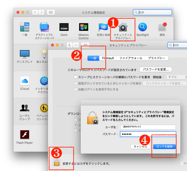 Apple メニュー >「システム環境設定」>「セキュリティとプライバシー」>「一般」タブを開きます。