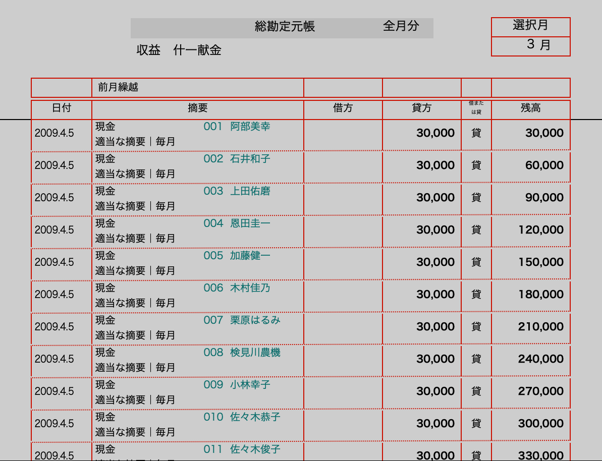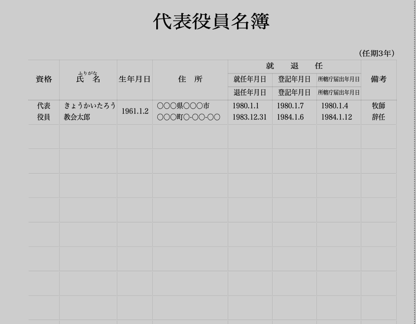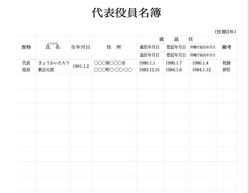 代表役員名簿・責任役員名簿・監事役員名簿・事業用備品台帳・業務用備品台帳 作成機能付き