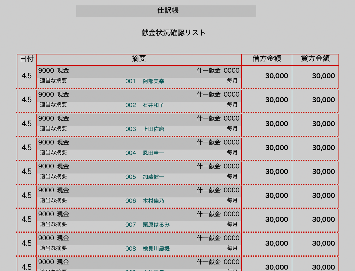献金者リスト作成・献金状況確認機能・定型入力機能