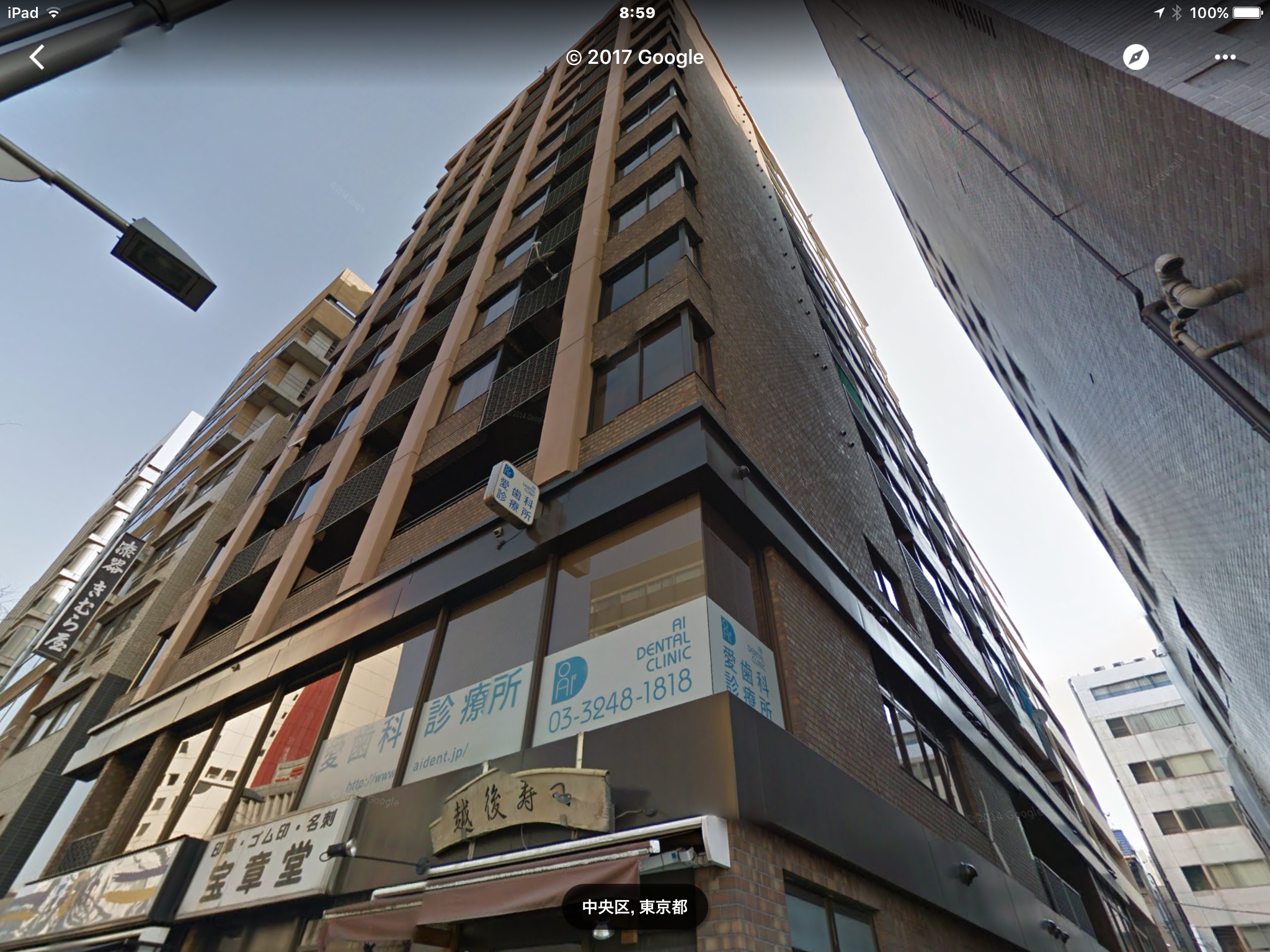 :晴海通り側一階に「てんや」があるビル。
